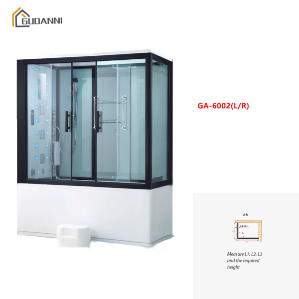 Home Shower Room HOT GUDANNI GA-6002 Square Steam Room with Shower, Bath, and Steam Room, Tempered Glass Double Doors, Stainless Steel Hinge, and Digital Display